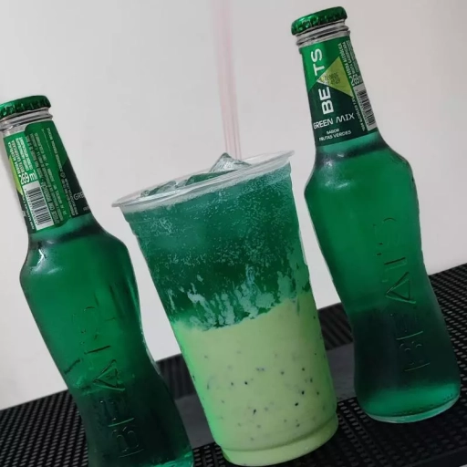 Beats Green Mix, kiwi fruta, dose de vodka, leite condensado e Gelo.